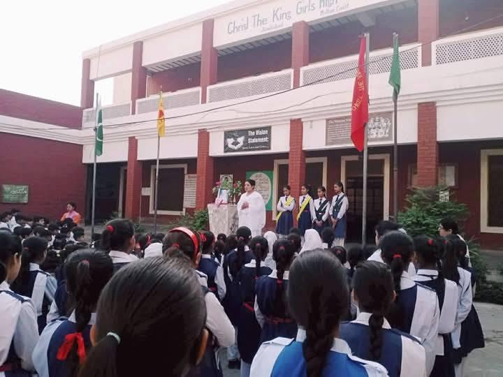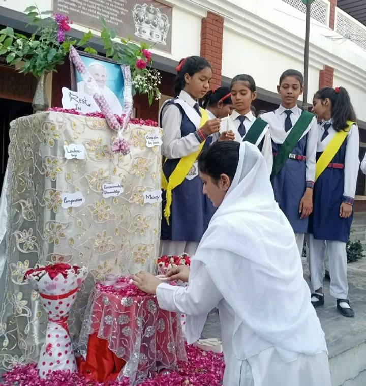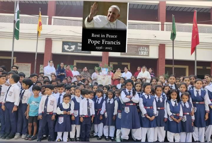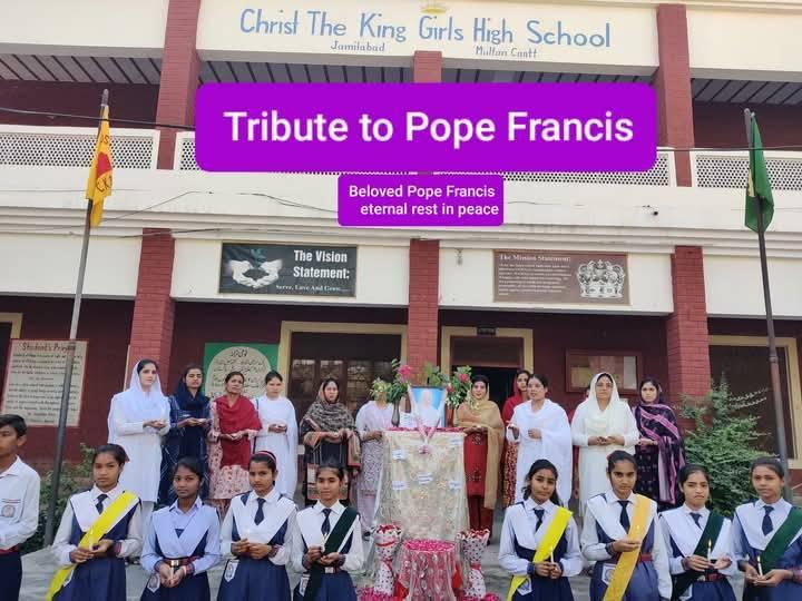 Christ The King High School Multan Pakistan during morning assembly had one minute silence & prayed for the deposed Soul of our beloved Pope Francis.