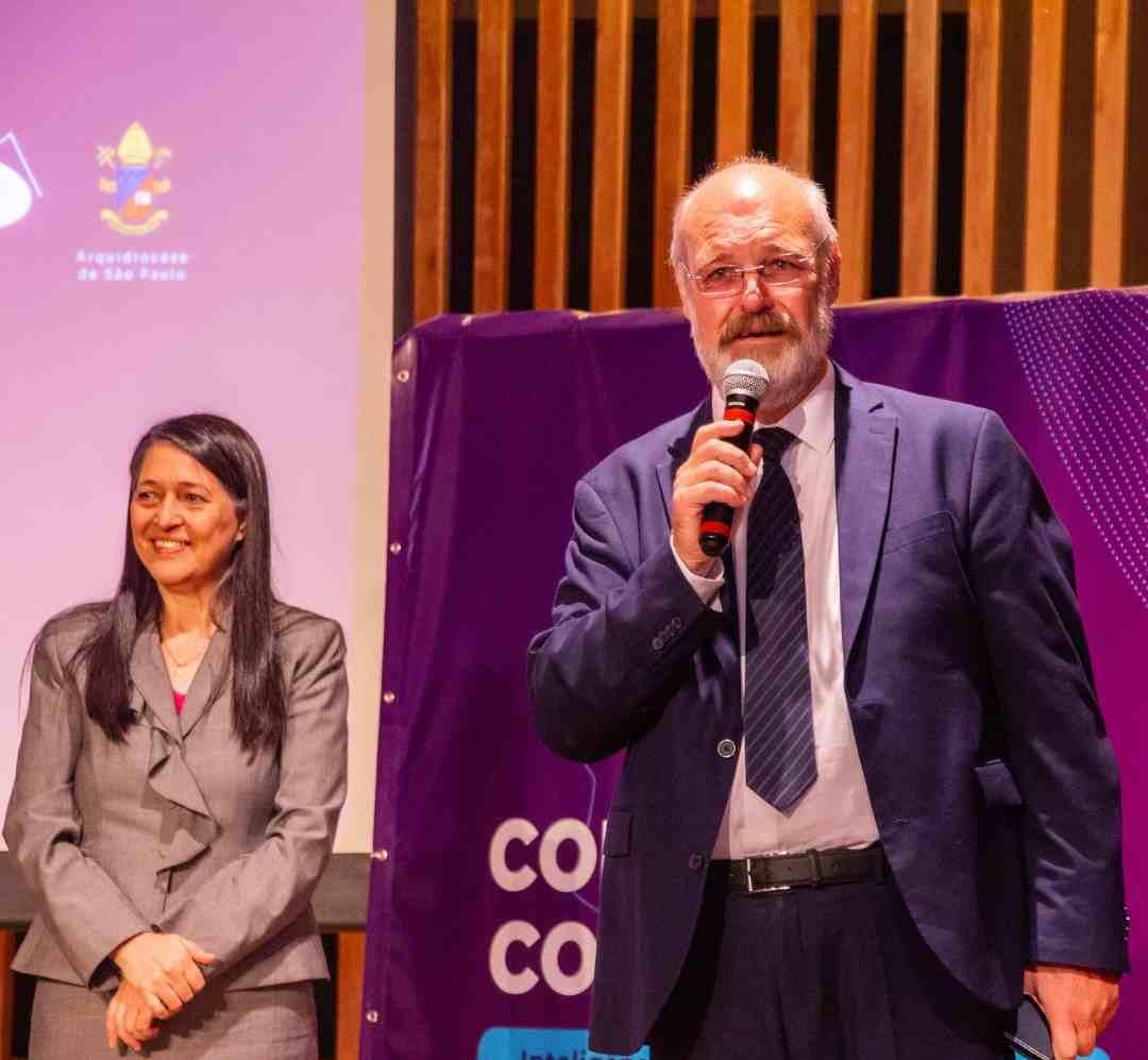 O segundo dia do congresso começou com uma celebração eucarística, seguida de uma palestra da Professora Maria Cristina Machado Domingues, que abordou os aspectos da Inteligência Artificial. Ela destacou tanto as vantagens quanto os riscos associados à tecnologia, alertando para os desafios éticos e sociais que devem ser considerados ao integrar a IA em nossas vidas e nas instituições.