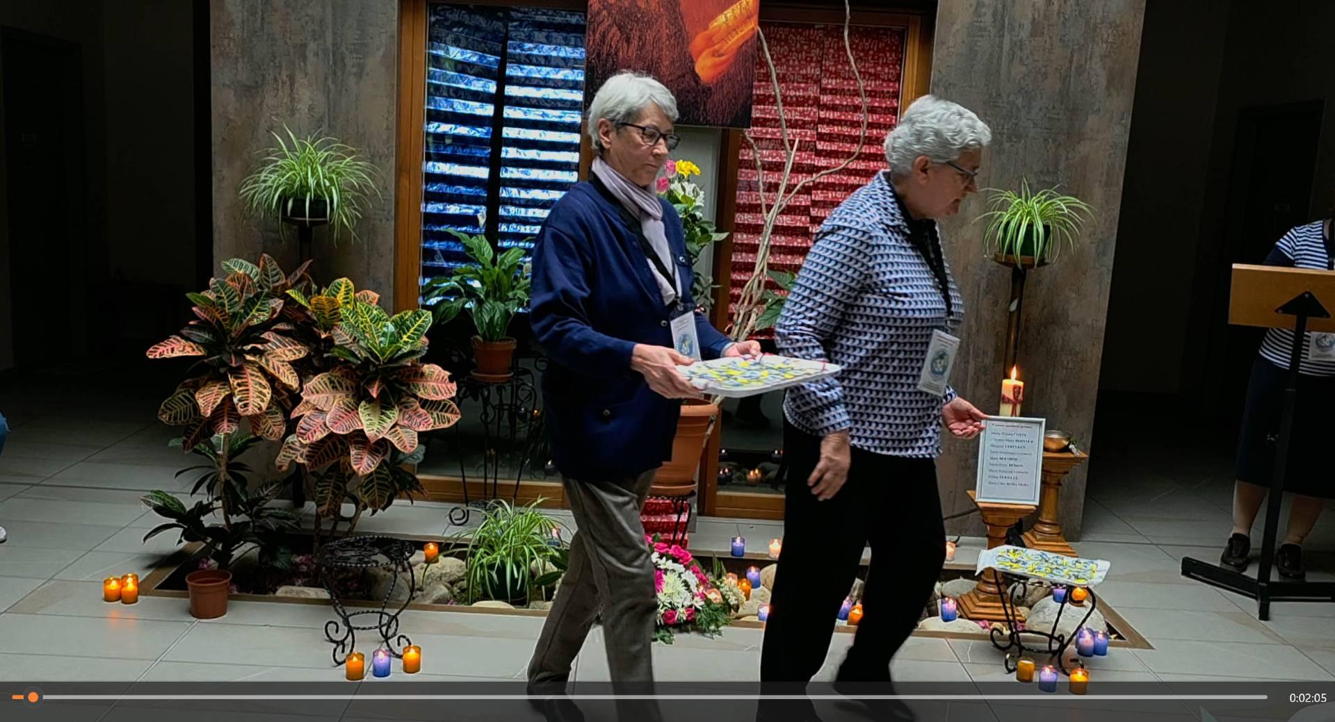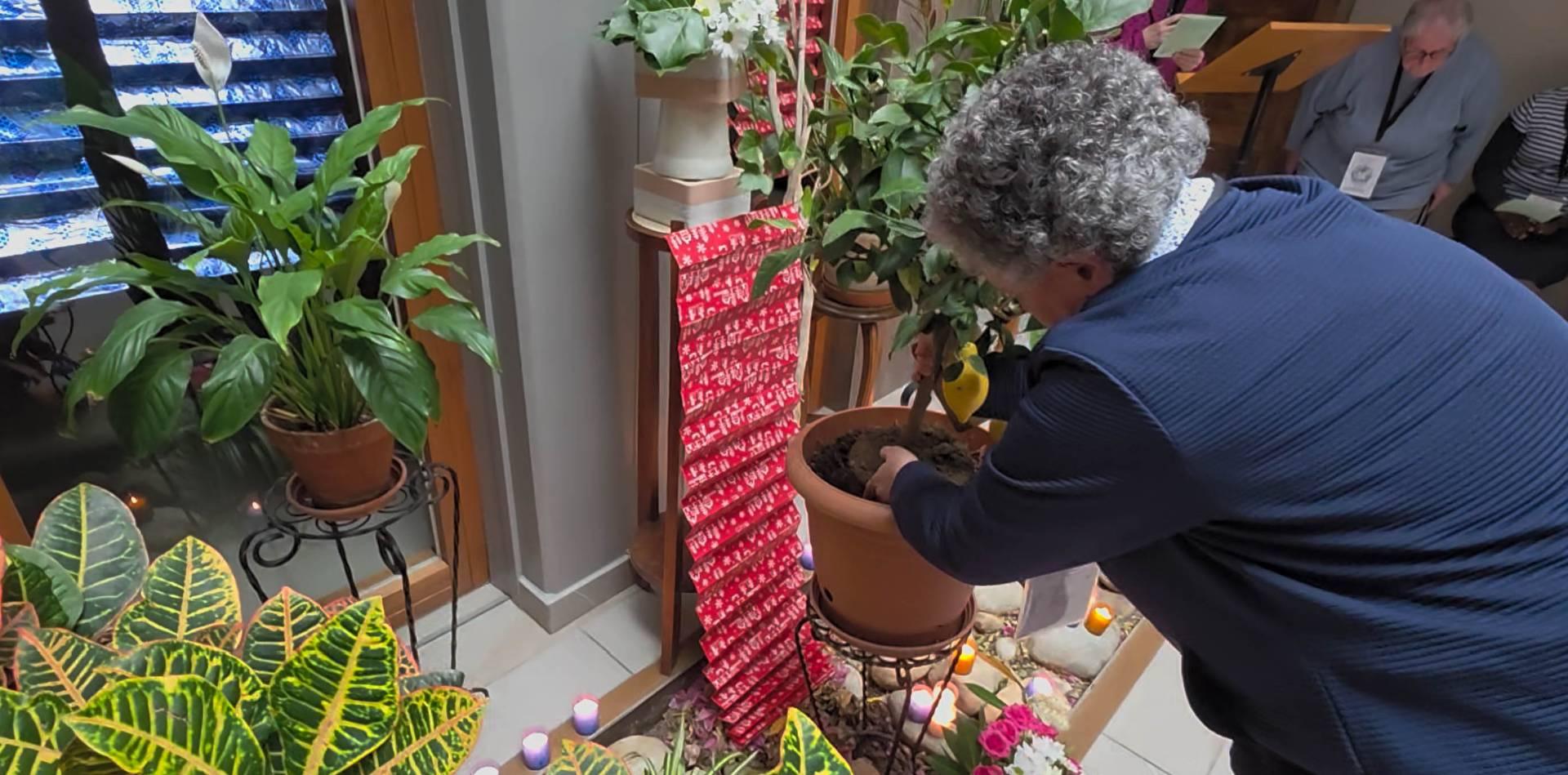 Um gesto simbólico expressou o carisma da Congregação: o plantio de um limoeiro, regado com terra e água, sinalizando missão, enraizamento e renovação contínua. Em seguida, chaveiros foram distribuídos às capitulares e aos participantes leigos, marcando o “sim” compartilhado ao movimento do Espírito. Uma leitura da Carta Eucarística do Pe. Médaille recordou o chamado fundamental à união com Deus e entre nós. A celebração concluiu-se com uma oração ao Espírito Santo e a bênção da Ir. Dolores Lahr, convidando todos a entrar no Capítulo com coragem, serenidade e renovado compromisso com a comunhão e a missão.