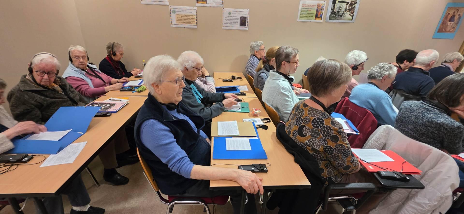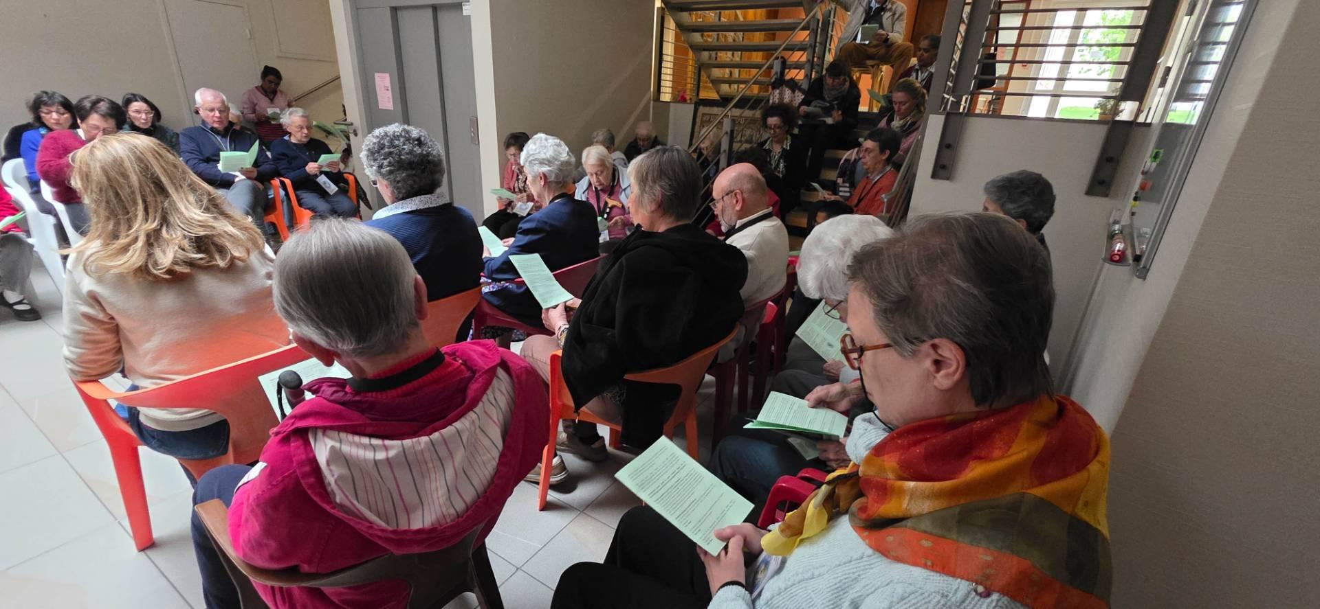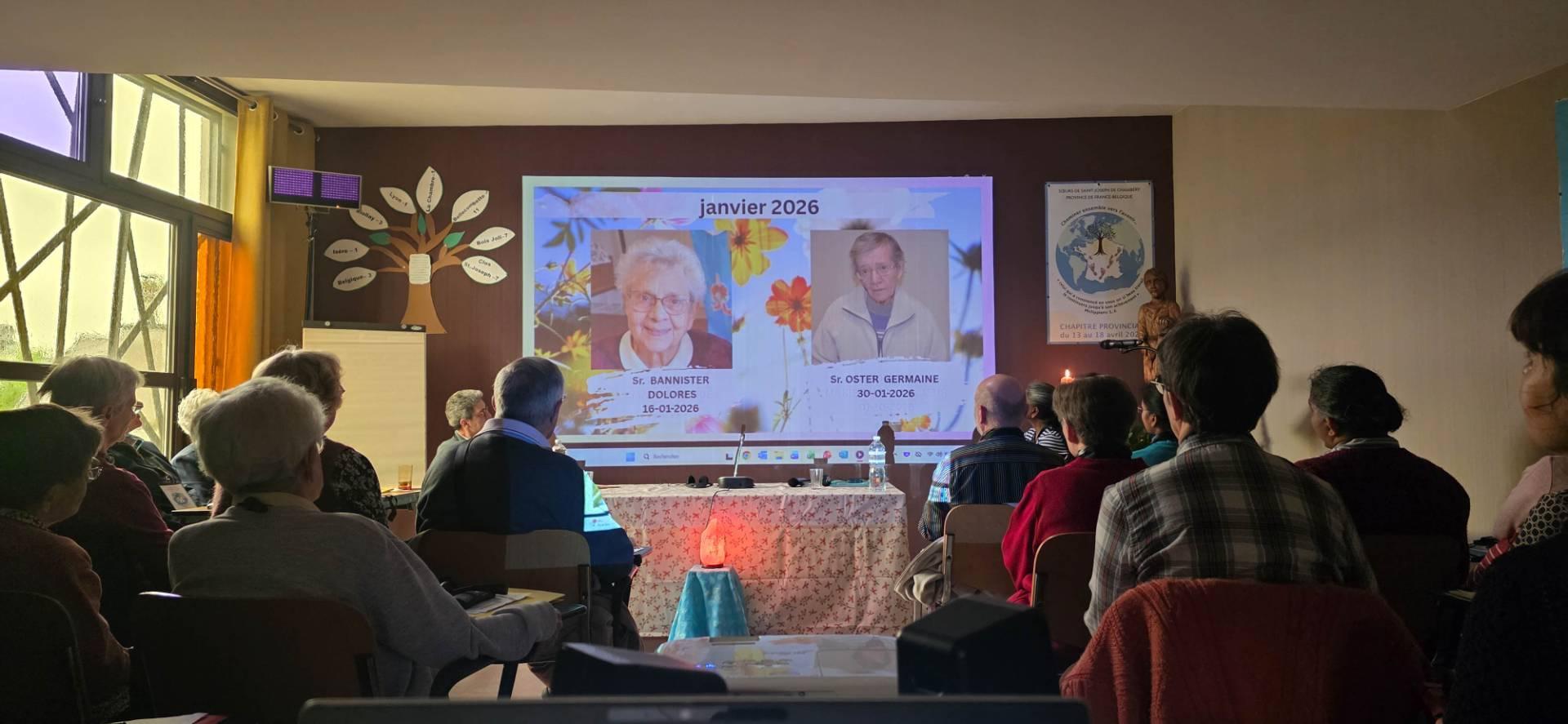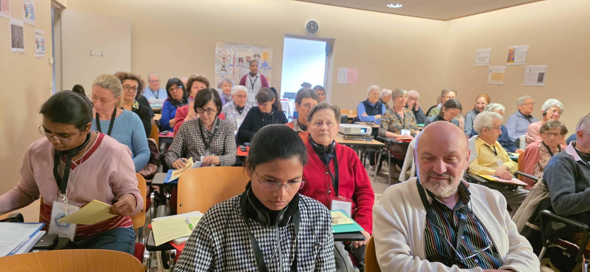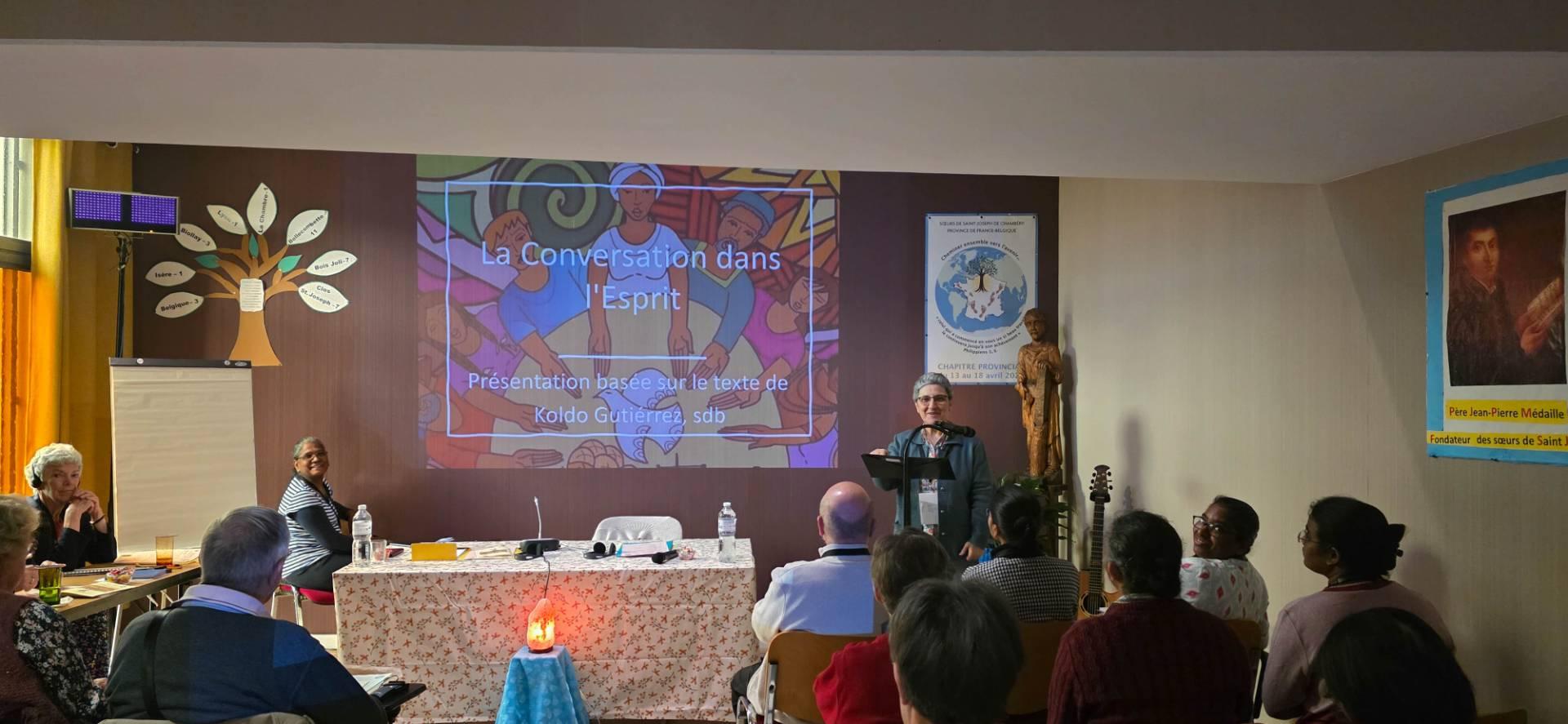 A facilitadora apresentou então a metodologia da “Conversação no Espírito”, preparando a assembleia para uma reflexão comunitária mais profunda. Os participantes se reuniram em pequenos grupos para estudar possíveis apelos para os próximos anos e, depois, retornaram ao Salão Capitular para partilhar suas percepções. O dia encerrou-se com uma Celebração Eucarística em Bellecombette, concluindo de forma orante o primeiro dia do Capítulo.