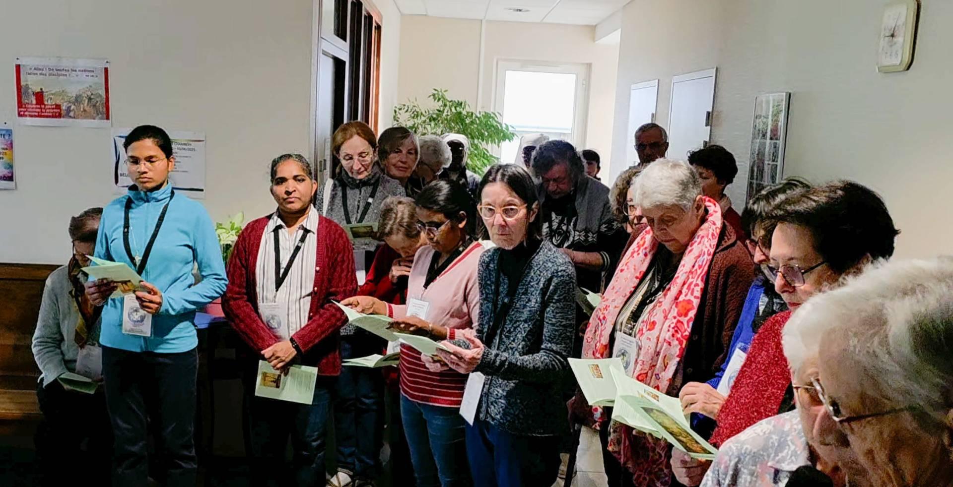 Enquanto uma chuva suave abençoava Chambéry, o verde da primavera e as flores em flor pareciam acolher o Criador. Nesse clima de renovação, 49 participantes se reuniram para a cerimônia de abertura do Capítulo Provincial 2026: 24 delegadas capitulares, 19 leigos/as parceiros/as, Ir. Dolores Lahr (Superiora Geral), Ir. Cristina Gavazzi (Conselheira Geral), Ir. Marian Murcia Piñeiro (Facilitadora do Capítulo), Ir. Barbara Bozak (Secretária), Ir. Laveena D’Souza (ICC) e Gabriella Pisanti (Tradutora).