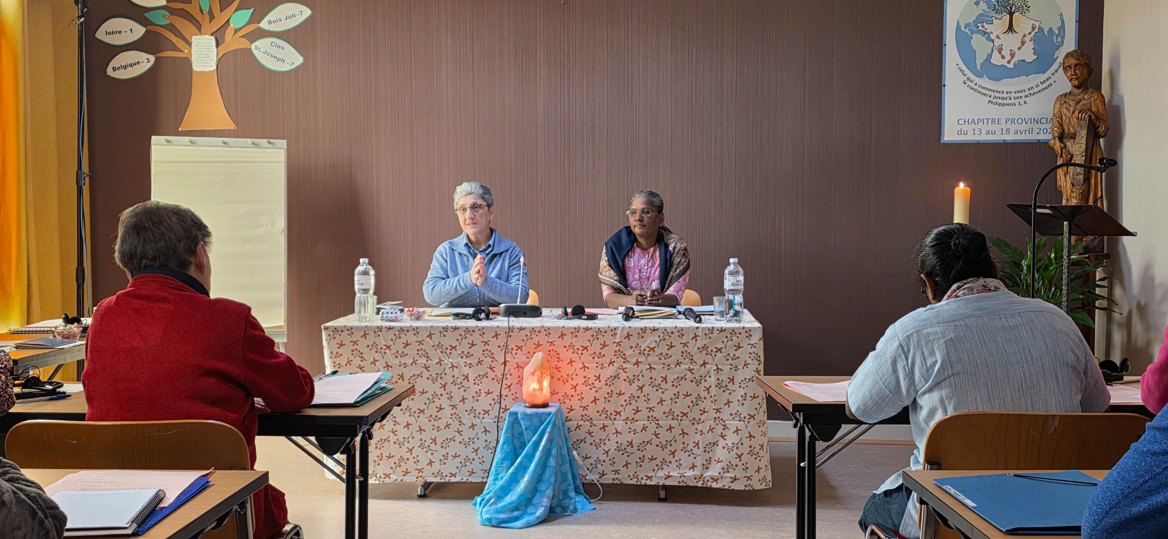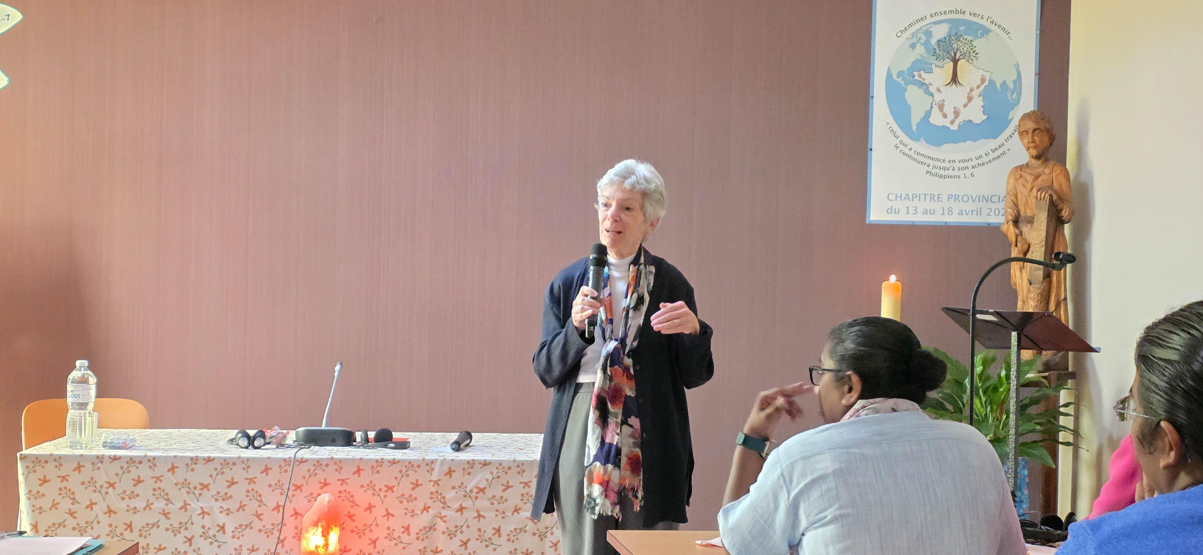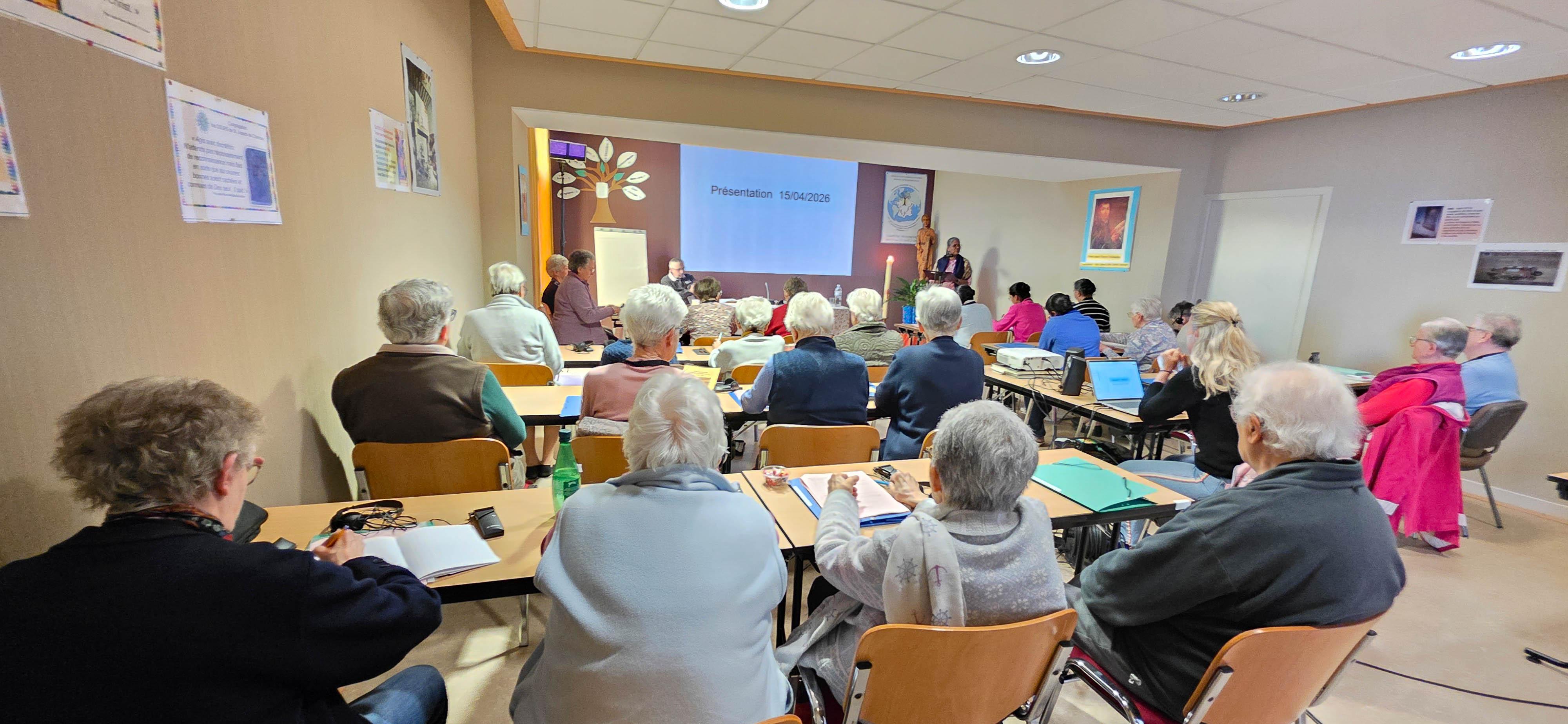 Após o momento de oração, as delegadas se reuniram no Sala Capitular, onde o senhor Renaud Aimard, Assessor Financeiro da Província França/Bélgica, apresentou uma visão geral da situação financeira atual da província. As Irmãs Cristina Gavazzi e Laveena D’Souza, em seguida, ofereceram uma apresentação concisa sobre o Manual de Procedimentos Econômicos, destacando seus principais elementos.