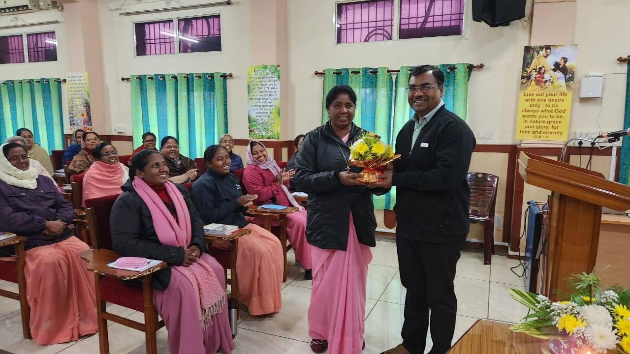 Nos dias 3 e 4 de janeiro, alimentadas pela Palavra e pelo Sacramento da Eucarisita, fomos conduzidas a uma sessão profundamente enriquecedora pelo Pe. Bhausaheb SJ, da Província de Pune. Ele nos ajudou a revisitar o tema do nosso Capítulo, convidando-nos a uma jornada interior por meio de perguntas reflexivas: Onde estou? Como estou? Quem sou eu? Seus insights nos desafiaram a crescer na liberdade interior e a responder fielmente às realidades do comunitarismo, da comercialização e da marginalização. Essas realidades, recordou-nos, não são apenas obstáculos, mas chamados urgentes para viver nossa missão com compaixão, coragem e esperança. Ele nos ajudou a olhar para nossa vida e missão com uma perspectiva e um discernimento mais profundos, convidando-nos a escutar atentamente o movimento do Espírito em meio aos nossos desafios internos e externos.